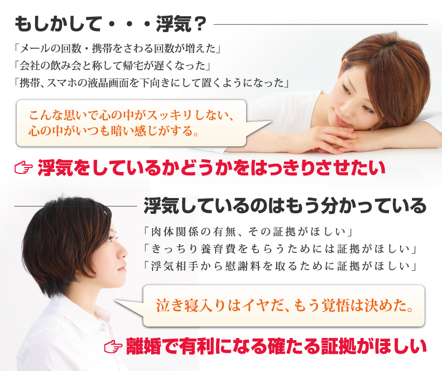 こんな悩みがあります。こういったお客様のお悩みに対しても調査後から2か月間はメンタル心理カウンセラーがご相談にのります。